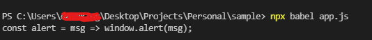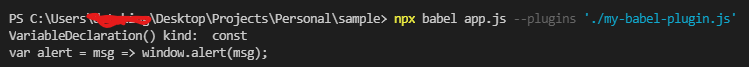 이 이유는 바로 파싱단계에서 저 위의 코드를 바벨이 인자로 성공적으로 받긴 받았지만 아무런 변환작업을 해주지 않고 그대로 출력해냈기 때문에 그대로 결과가 나오는 것이다.