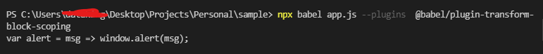 babel 명령어로 실행시켜주면 알아서 config 파일 내부의 플러그인들을 읽어서 실행시켜 준다.
