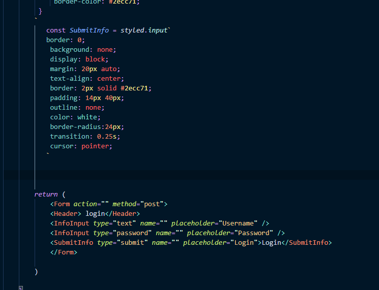 styled-components 를 이용해서 UI 짜는 도중에 input submit 부분에서