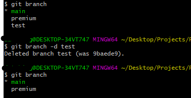 git branch -d '브랜치명' // -d 브랜치 삭제 옵션