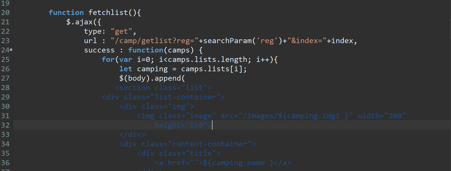 2-2 > 서버돌면서 호다닥 데이터를 담아온다 두번쨰 사진의 success : function(camps) 의 camps