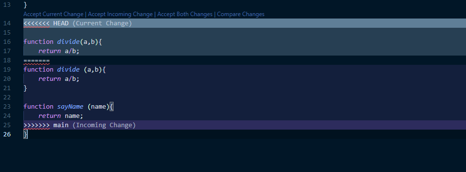 해당 원인은 깃이 파일들을 관리하다가 a 브랜치의 내용과 b 브랜치의 내용이 겹치는 부분이 있어 선택 할 수 없을 때 에러메세지와 함께 로컬 리포지토리에도 구분지어서 파일을 알아볼 수 있게 나오는데