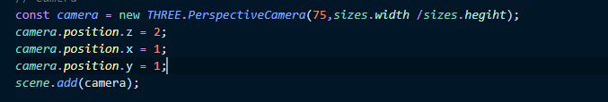 그 다음은 Three.js에서 중요한 요소인 camera이다. Three.js로 만들어진 예제를 보면 바로 알 수 있듯이 카메라 즉 보이는 시점을 어떻게 조정하느냐에 따라 너무나도 이쁘고 화려한 느낌을 줄 수 있다.