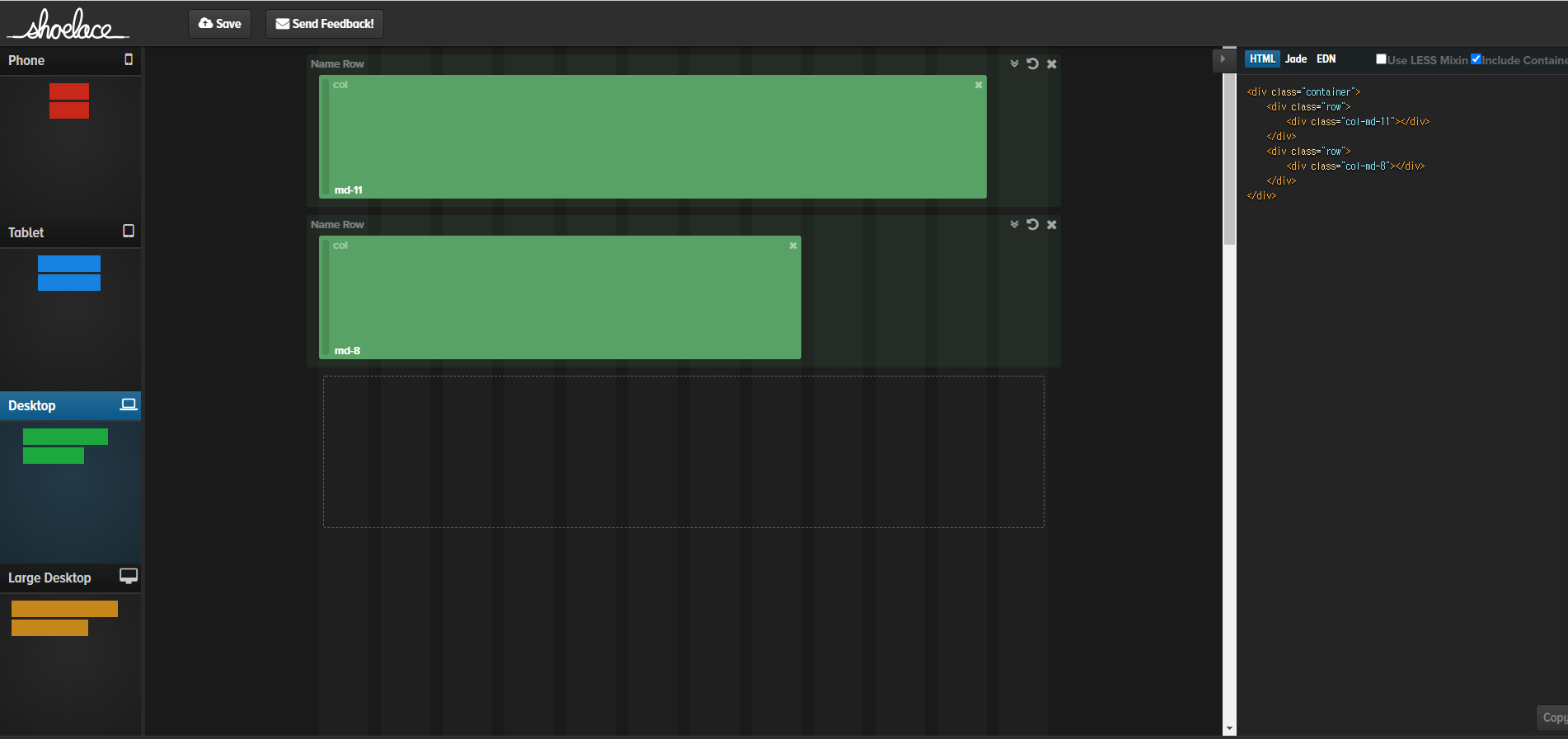 이런식으로 데스크 탑일 때 블락들을 잡아두면 왼쪽 상단 첫번째에 뜨는 것처럼 ui가 나오고 모바일일때 디자인을 손봐서 데스크탑일 때 UI도 조정할 수 있다.