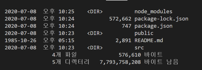 dir 명령어를 통해 정상적으로 설치가 되었는지 확인한뒤에