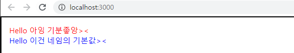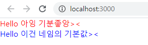 이렇게 Hello 컴포넌트에서 디폴트 name 값을 설정해주고