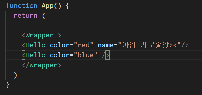 위의 두 Hello컴포넌트를 감싸준다는 뜻의 Wrapper 컴포넌트를 하나 만들어준다.