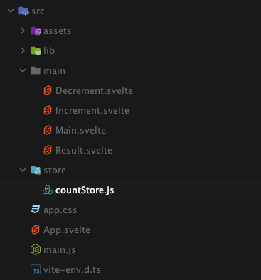 이렇게 하면 store를 사용 하는 방법 중 1가지를 알게 된 것이고 조금 더 오류를 줄이고 재사용성 있게 사용하는 방법은 외부 컴포넌트에서 count 값을 컨트롤하는게 아닌 store에서 관리 하는 것인데