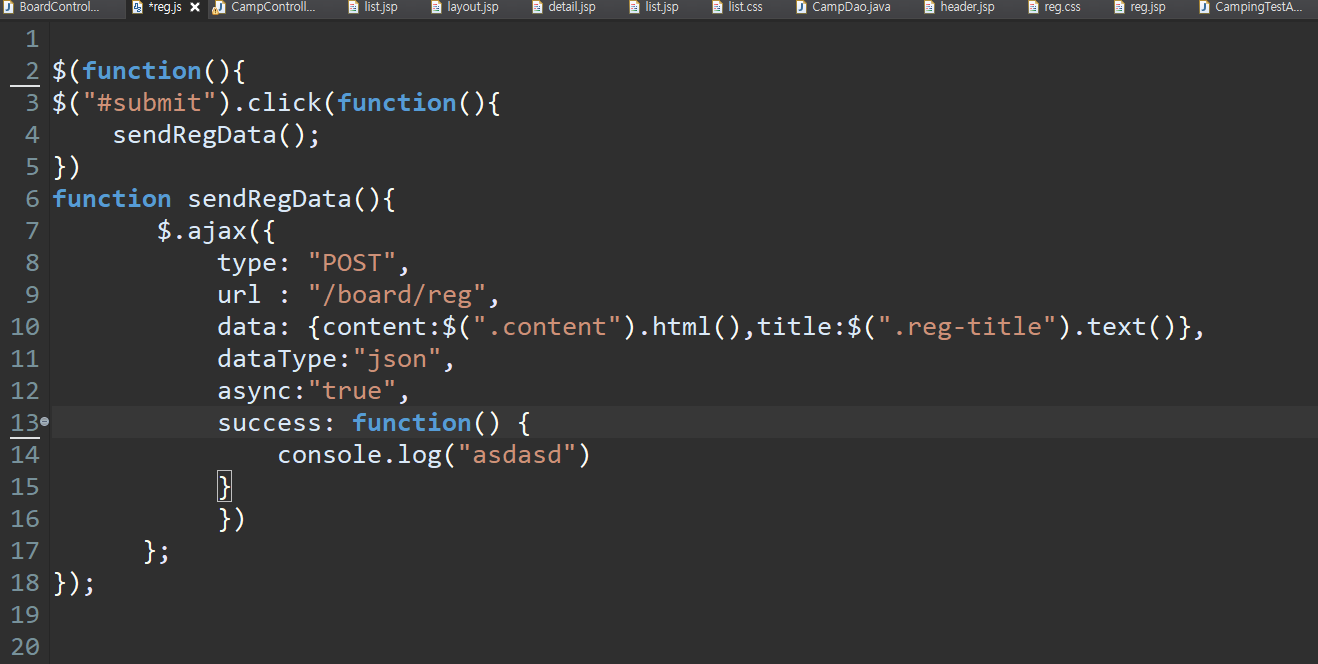 이것은 내가 등록 버튼을 눌렀을때 우리 스프링 부트 쪽 컨트롤러도 데이터를 넘기는 부분인데 보는 것과 같이 data 키워드(보낼 데이터)에 html() 메소드를 이용해서 보내주는 것을 볼 수가 있다.