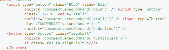 onclick="document.execCommand('Italic')" /> <input type="button"