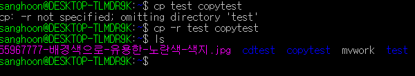 마찬가지로 디렉토리도 뒤에 -r 만 붙여준다면 정상적으로 복사해줄수 있다.