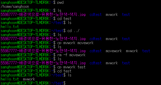 나중에 디렉토리 구조가 복잡해지면 헷갈릴수 있으니 현재위치 기준으로 움직이는 것과, 홈 디렉토리에서 움직이는것, 절대위치로 움직이는 것 전부 어떻게 써야 좋은지 생각해서 써보도록 하자.