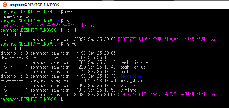 2-2. ls -al : 숨겨진 파일들까지 알려주는 명령어