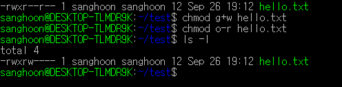 3. chmod : 권한을 바꿀 수 있는 명령어 (u, g, o) ( + , - ) 조합