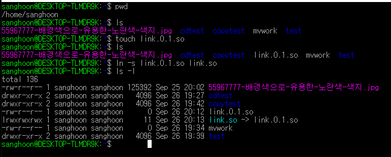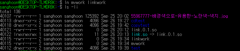 반대로 하드링크를 거는 방법은 뒤에 -s 만 뺴고 붙여주면 된다.