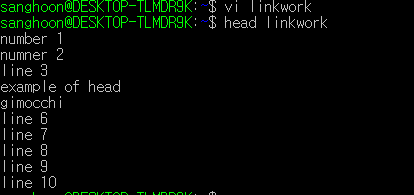파일의 처음과 끝부분을 알 수 있게 해주는 명령어가 있다 바로 head 와 tail 인데 head는 기본적으로 10 라인의 내용을 보여주고 뒤에 명령어를 추가해줌으로써 본인이 원하는 양의 파일을 출력할 수 있다.