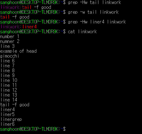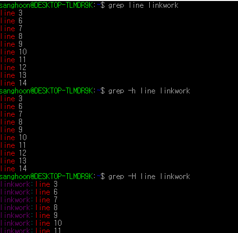 그 다음 내용만 찾는 것이 아니라 파일명도 같이 출력 해주고 싶을 떈 grep 뒤에 -H 를 적어주면 되겠다. (소문자 말고 대문자로 적어야 제대로 작동이 되는 것을 볼 수가 있겠다.)