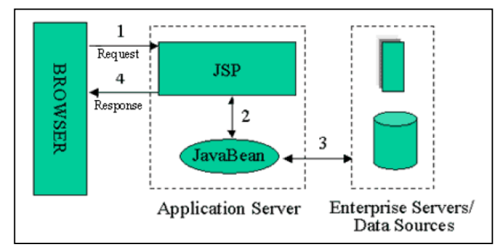 JSP는 간단하고 쉽게 웹 프로그래밍을 할 수 있지만 로직이 복잡한 프로그램을 개발하기에는 불편한 점들이 많다. 소스코드 안에 브라우저에서 전달 되는 인수 처리, 비즈니스 로직, 데이터베이스 연계 및 UI 코드 등을 하나의 모듈에서 처리하기 때문에 소스코드가 길어지고 중복되는 코드 구현이 많아질 수 있다. 이렇게 반복되는 코드등을 신경 쓰지 않고 하나의 모듈로 구현하는 방식의 소스코드를 모델1 이라고 한다.