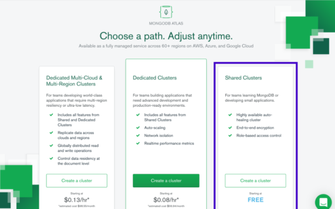 mongodb.com/cloud/atlas 주소로 들어가면