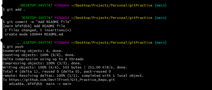 이제 이후에 로컬에서 개발하고 테스트 하던 내용들 즉 변화가 생겼고 그 변화를 Remote Repo에도 반영시키고자 한다면 push를 이용하면 되겠다.