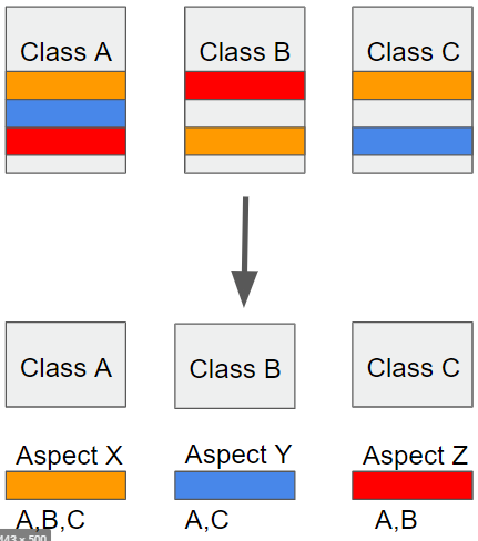* 좋은 재사용성 효율 : 공통기능코드를 여러 핵심기능코드에서 사용가능